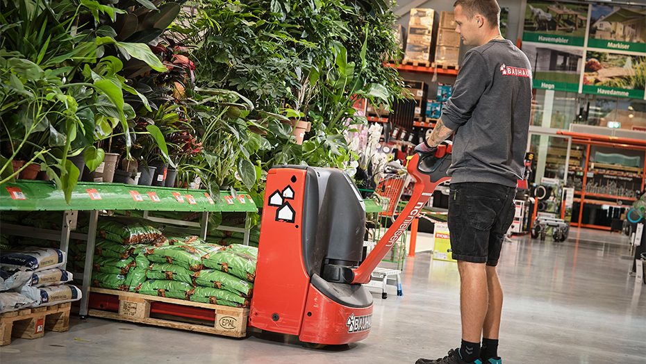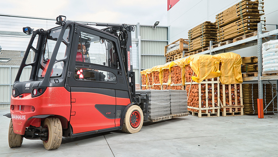 Linde-flåden er dimensioneret til kørselsbehovet i BAUHAUS Sønderborg. Der skal læsses varer af indkommende lastbiler fra leverandørerne, sættes produkter op på øverste hylde med en reachtruck, flyttes varepaller på gulvet og fragtes tompaller og emballage til varegården – ligesom størsteparten af Linde-maskinerne kører ind i butikken.