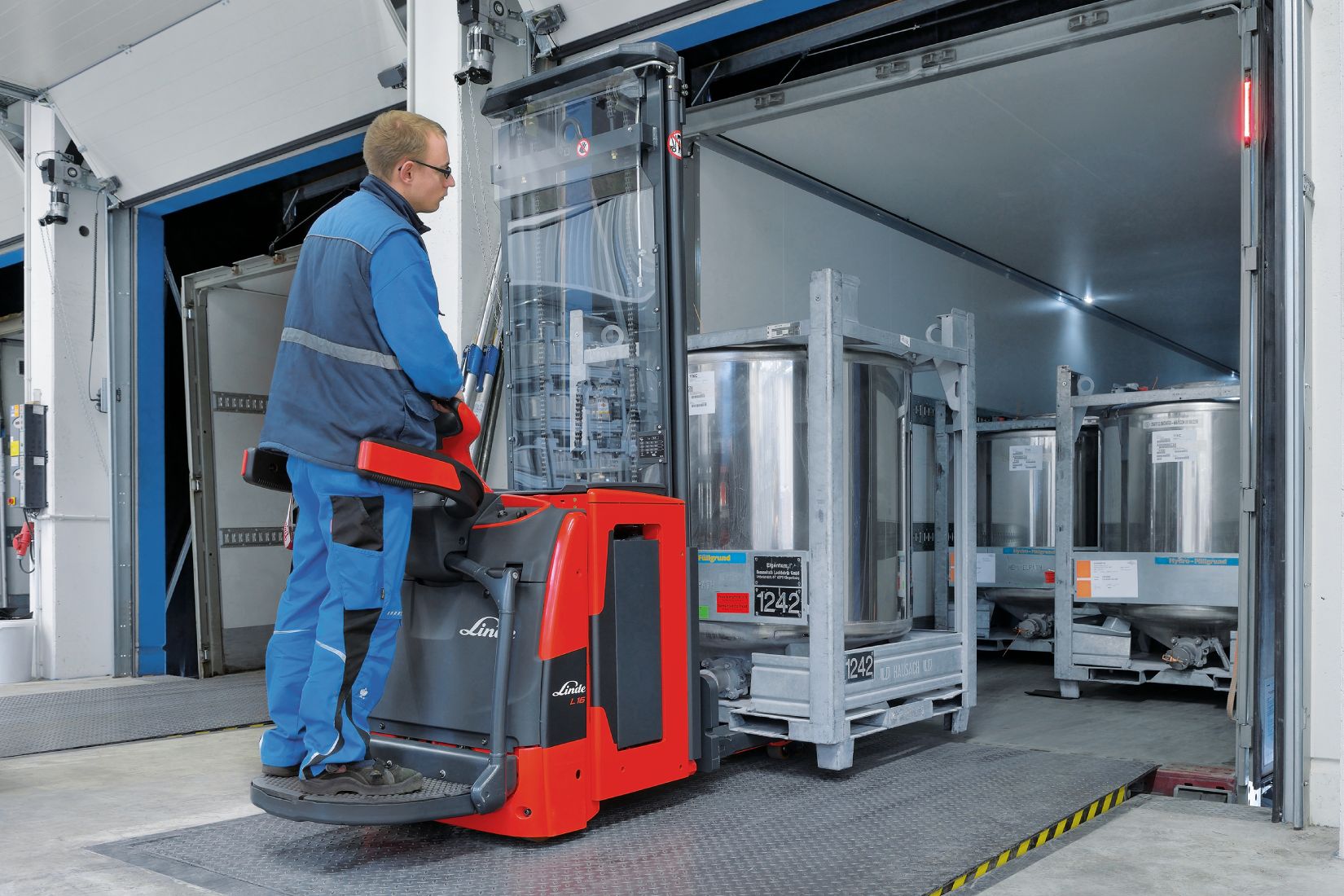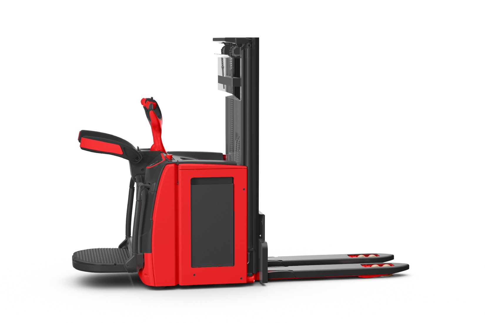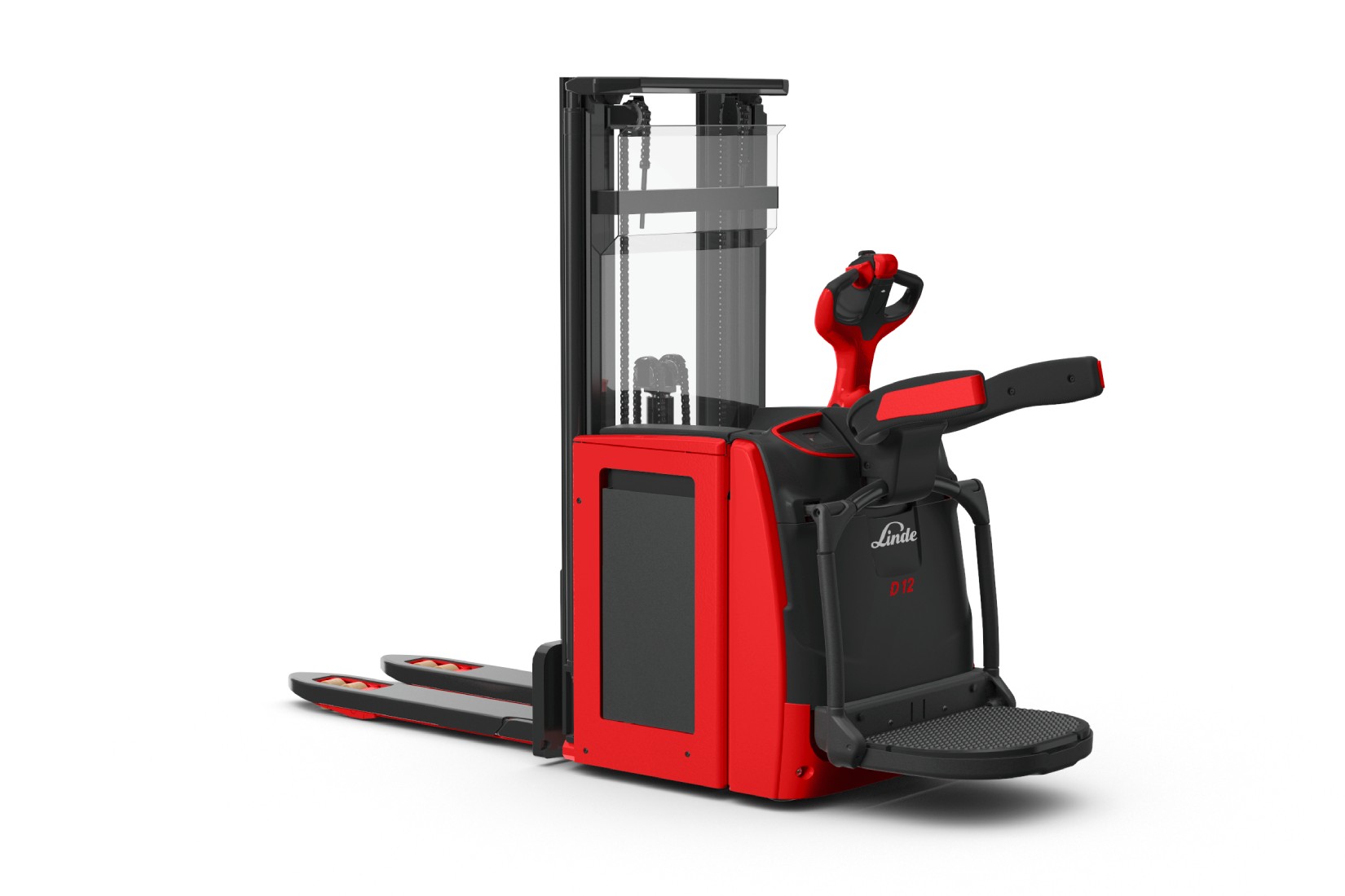 Førerplatformen kan foldes ud, og den elektriske dobbeltstabler D12 - D14 AP kan derfor bruges enten til gående eller siddende fører, hvilket giver fleksibilitet.