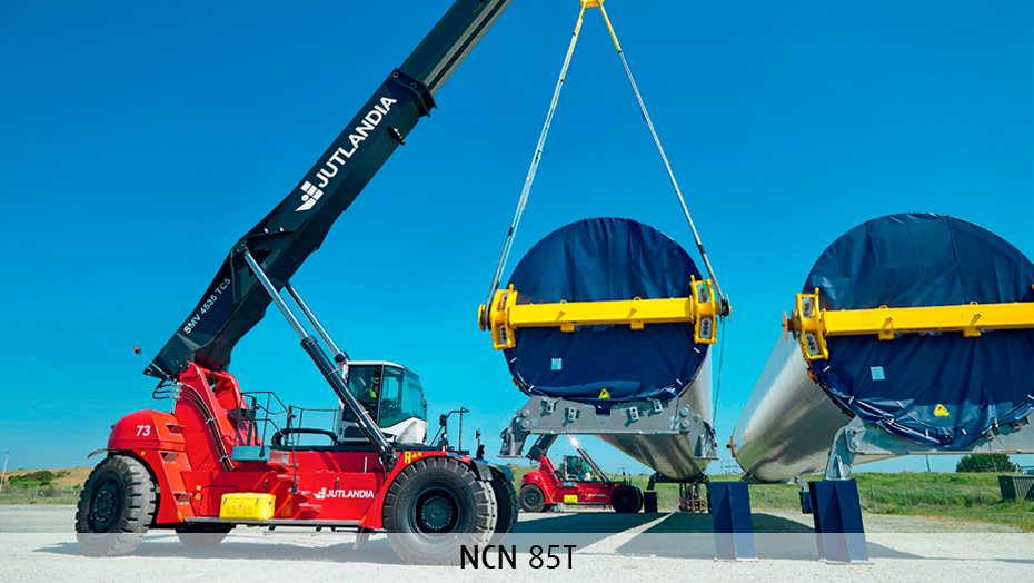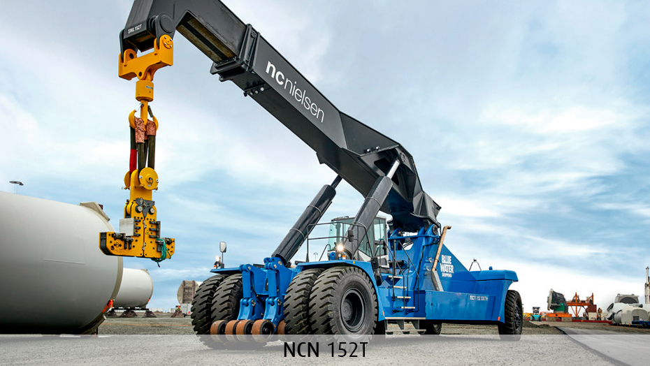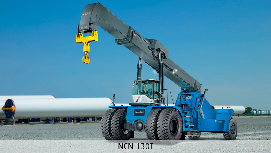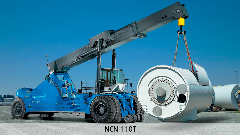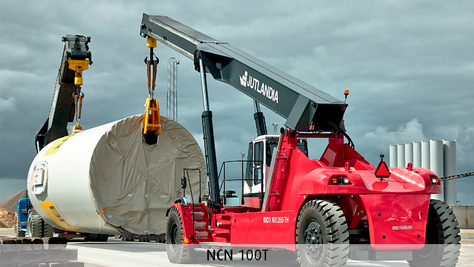 Hos N.C. Nielsen får vi flere og flere henvendelser omkring de helt tunge løft. Vi har eksempelvis leveret en række specialløsninger til den danske vindmølleindustri, hvor vindmølletårne og naceller skal løftes fra en blokvogn på stands på en oplagringsplads eller transporteres fra en industrihal til en anden. Naturligvis klarer reachstackerne også opgaver som fleksibel containerhåndtering på terminaler, flytning af tonstunge emner på skibsværfter eller transport på de travle forsyningsbaser i havnen.