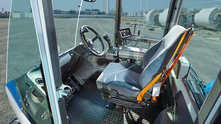 Tag et kig ind i kabinen. Den er udformet med store og brudsikre vinduer, der giver optimal synlighed i alle retninger. Den har masser af plads og aflæggerplads. Den tilbyder overskuelige betjeningspaneler, der er placeret