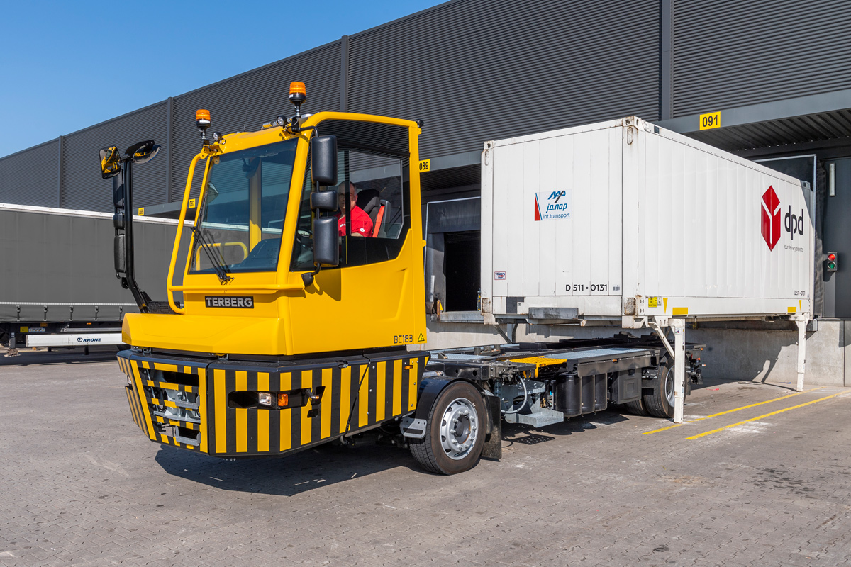 Den specialudviklede Terberg DT-serie (Distribution Tractor) har lav indstigningshøjde, et bredt udsyn fra førerkabinen og en række sikkerhedsforanstaltninger, som sætter Terberg DT-serien nye standarder, når der skal flyttes trailere på travle godsterminaler, centrallagre og distributionscentre.