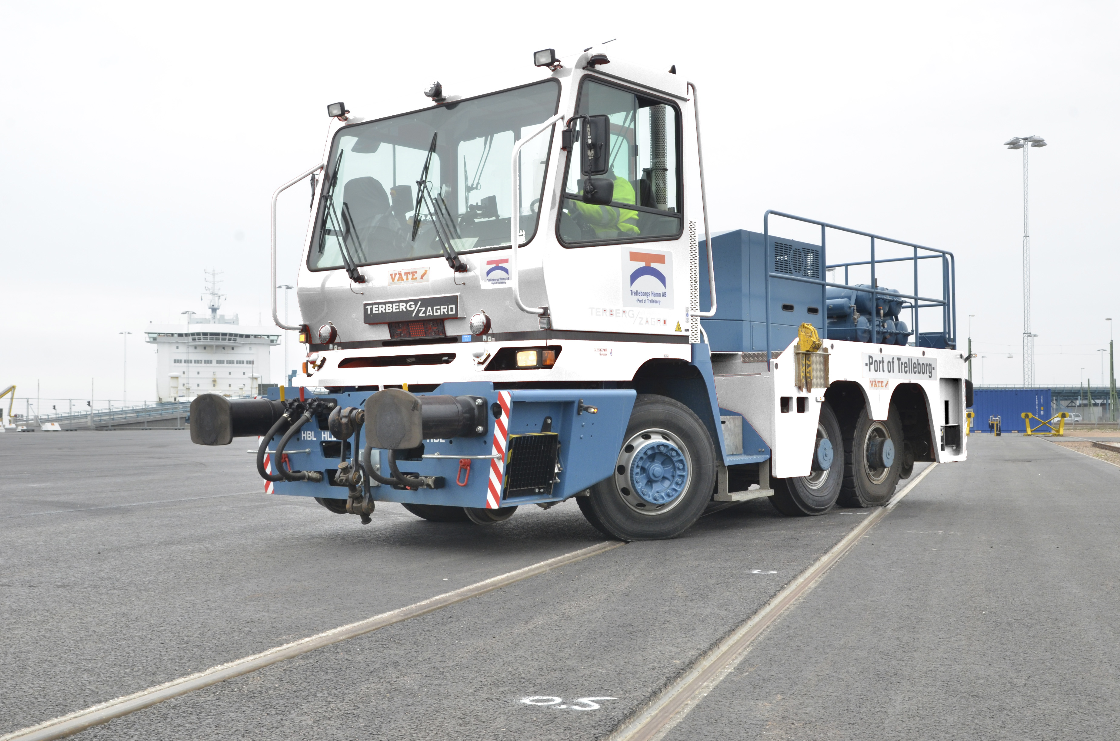 Terberg Zagro er udviklet til at kunne køre både på og omkring jernbanespor. Den trækker snildt 2.500 tons med nedslåede skinnehjul og direkte kontakt mellem bagerste hjulsæt og skinnerne.